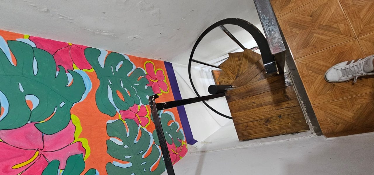 En planta alta, con entrada independiente por amplia escalera, ingresamos a comedor, amplio dormitorio con ventanas al frente, baño con bañera, lavadero, segundo dormitorio con ventilador de techo, por escalera caracol tercer dormitorio y baño. terraza.